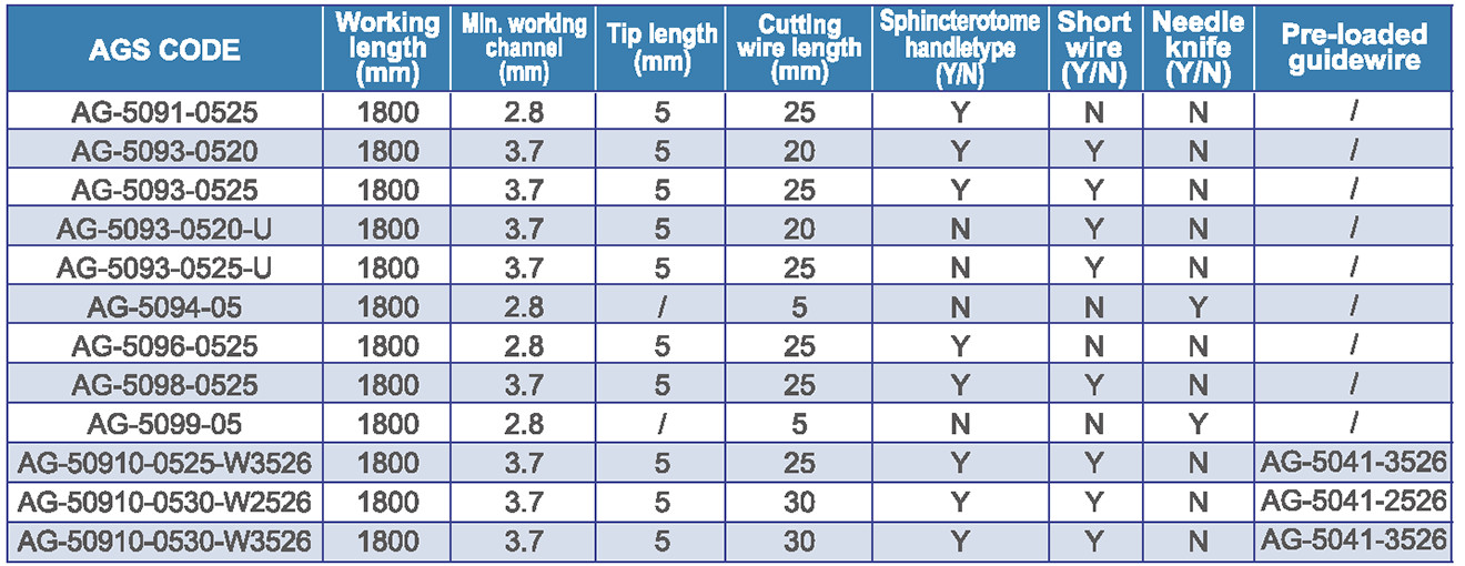 Indication:The device is indicated for use in the cannulation of the biliary ducts and the transendoscopic sphincterotomy of the Papilla ofVater and/or the Spincter of Oddi. The device is supplied sterile and intended for single use only.