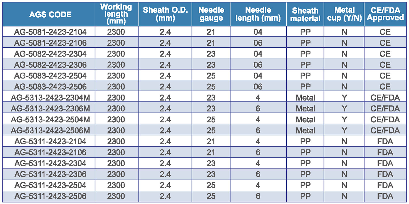 Indication:The device is intended for endoscopic injection into gastrointestinal mucosa, or to endoscopically introduce a sclerosing agent into selected sites to control actual or potential bleeding lesions in the digestive system.